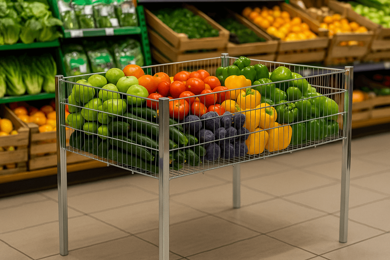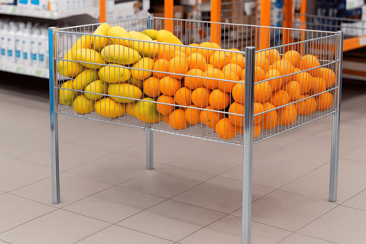 Žičane akcijske korpe su praktične i izdržljive, savršene za izlaganje proizvoda na akciji u trgovinama. Napravljenje od čvrstog metala, omogućavaju dobar protok vazduha i jednostavno organizovanje proizvoda. Lako se postavljaju i premještaju, čineći ih idealnim za promocije i snižene artikle u prodajnim prostorima.
